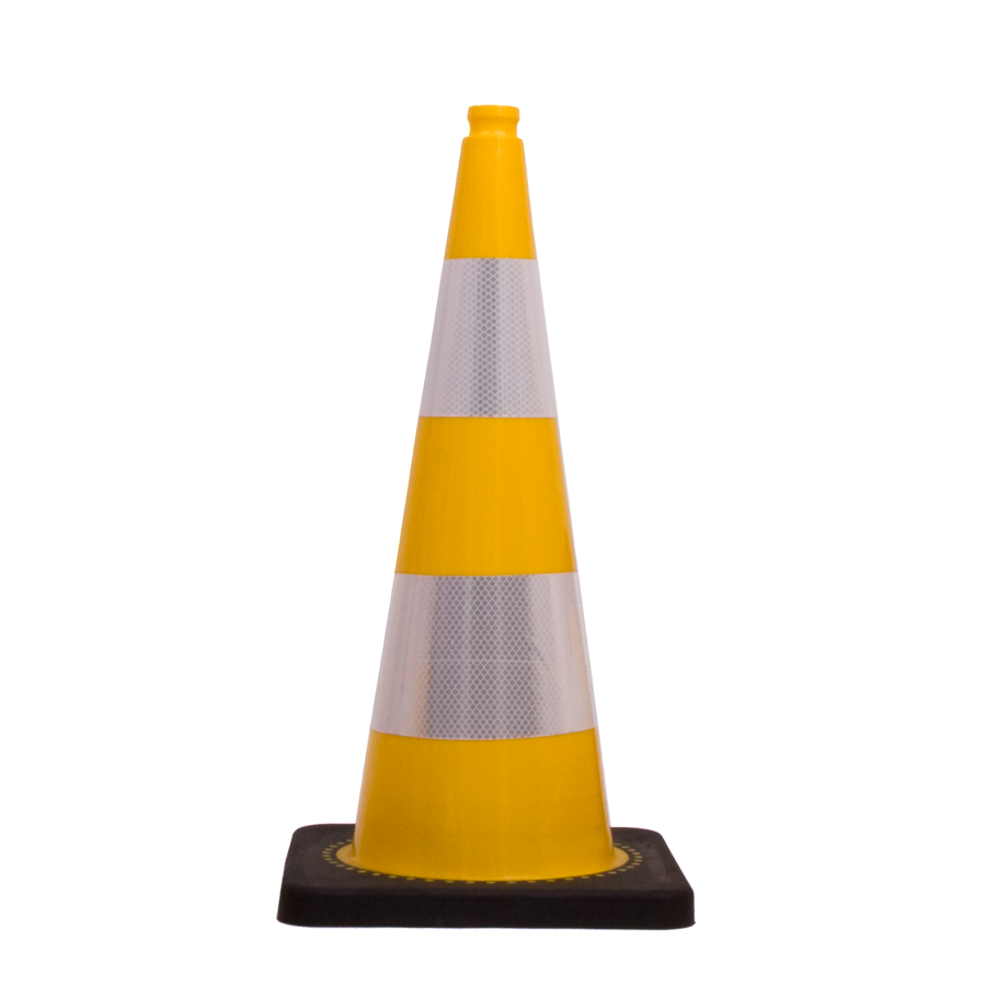Verkeerskegel 750 mm. Geel met 2 retroreflecterende banden klasse 2