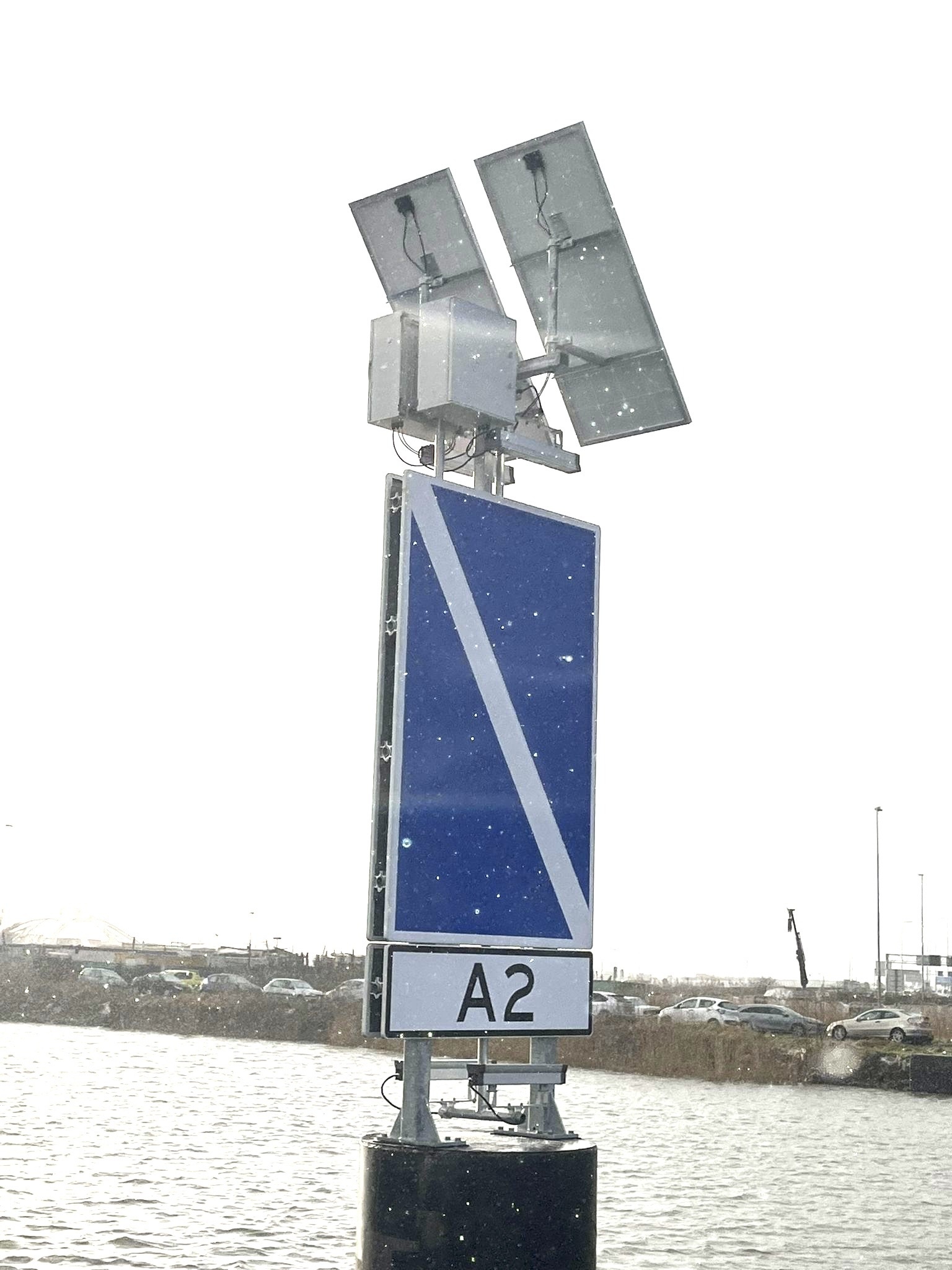 Complete set led-aanstraalverlichting voor het verlichten van scheepvaartborden. Ideaal voor locaties waar geen vast stroomaansluiting aanwezig is. Deze set bestaat uit een 190 Watt zonnepaneel, solar laadregelaar en een onderhoudsvrije batterij van 45 Ah. Alle onderdelen zijn een een stevige stalen behuizing gemonteerd. Deze set kan eenvoudig bovenop een mast worden geplaatst met een diameter van 90 mm. Het aluminium LED-Armatuur kan met de meegeleverde montagebeugel aan een uithouder worden gemonteerd zodat het scheepvaartbord goed uitgelicht kan worden voor optimale zichtbaarheid.